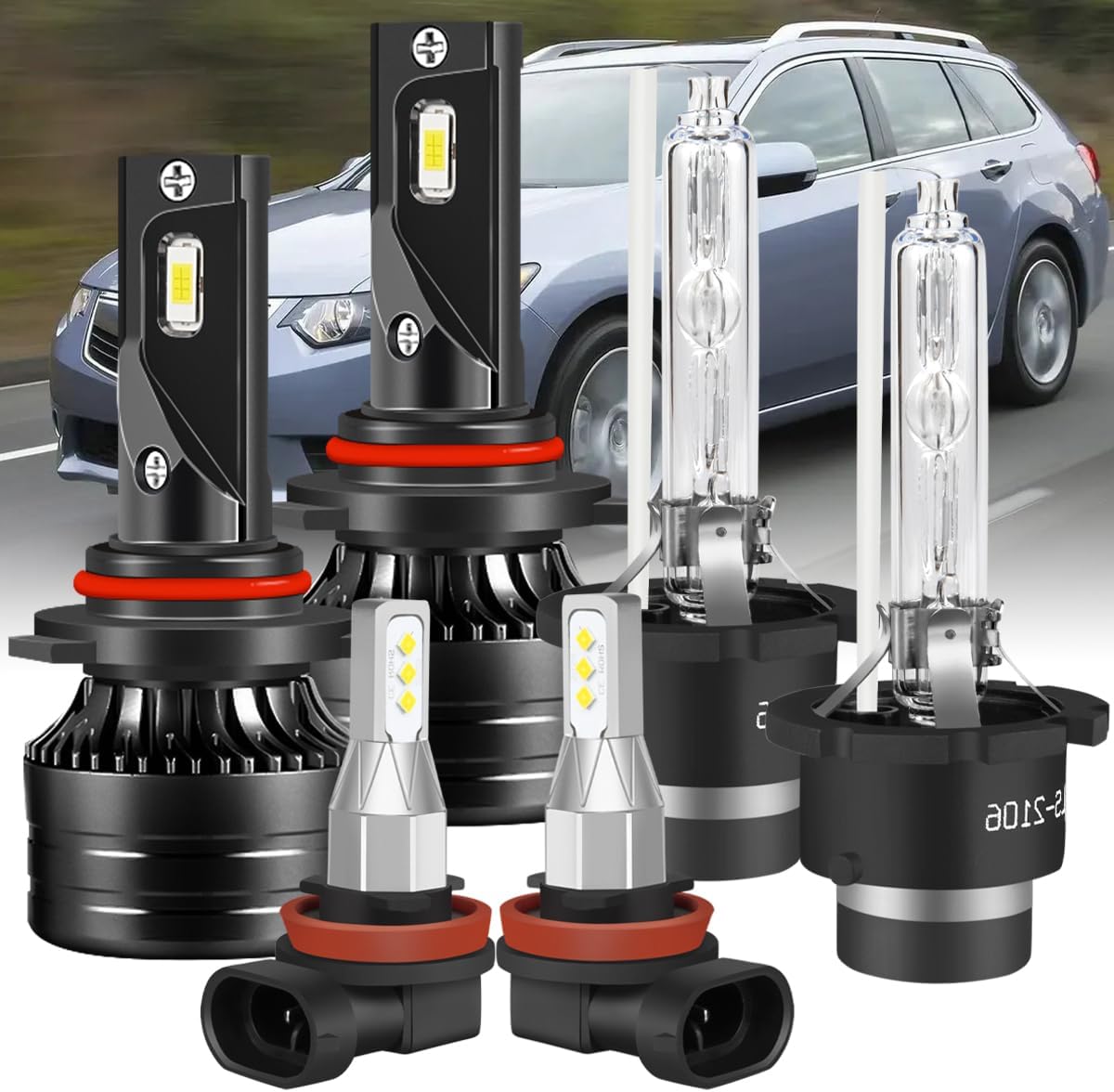 Fit For Acura TSX 2009-2014,9005 High Beam+D2S Hid Headlight Bulbs+H11 Fog Bulbs,6000K Pure White 20000LM Upgrade Automotive Light,Plug N Play,6PCS