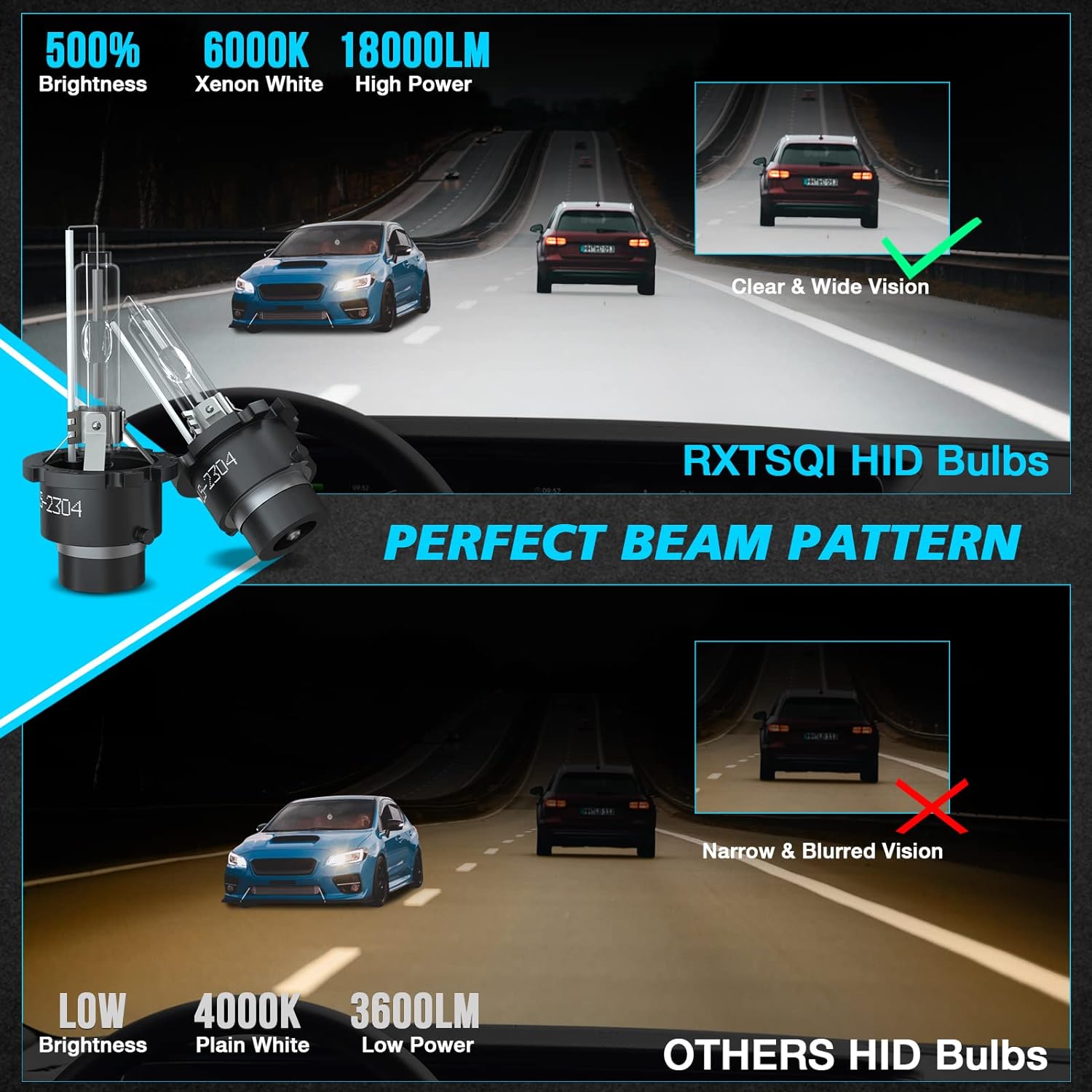 - Excellent focused beam mode, hid headlight bulbs lighting distance greatly improved, no black spots, no glare, will not make oncoming vehicles feel dazzling, let you peace of mind driving.