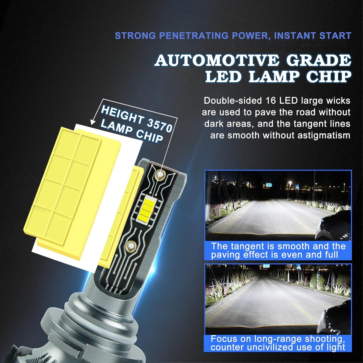 Great Brightness - 120W, 20000LM per pair, 1800FT visibility. 400% brighter than your original halogen lamps.